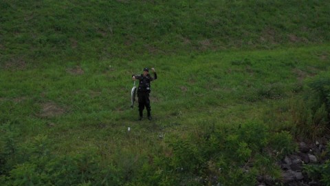 しかも、たまたま通りかかったドローンにガッツポーズ!