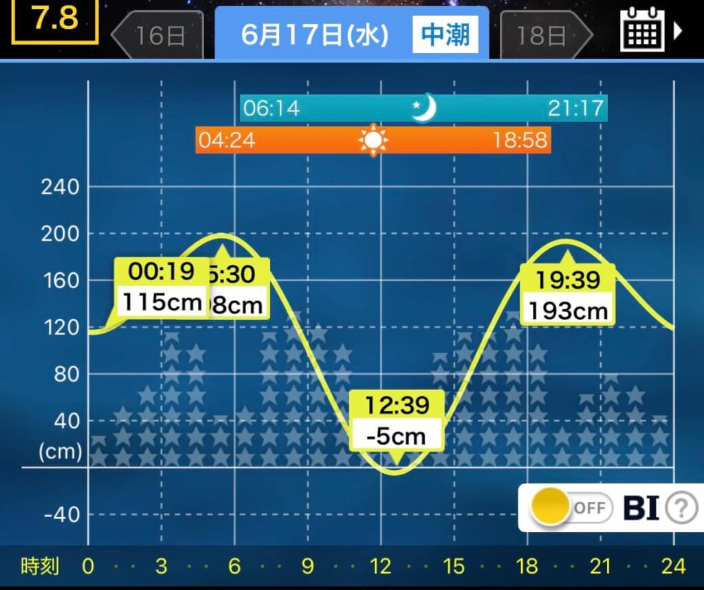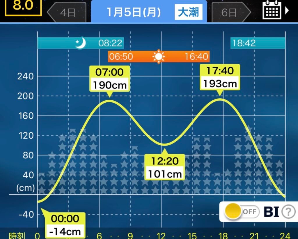 昼潮と夜潮の潮位がもっとも落ちるタイミングは特に大切で、普段立ち込めない場所に立てたり、ウェーディングゲームで有効なタイミングとなります。